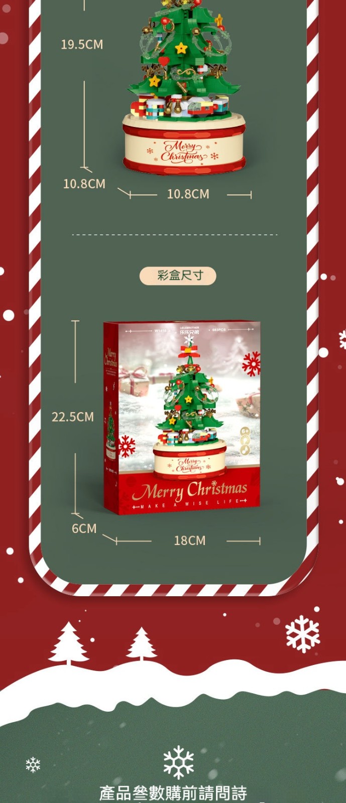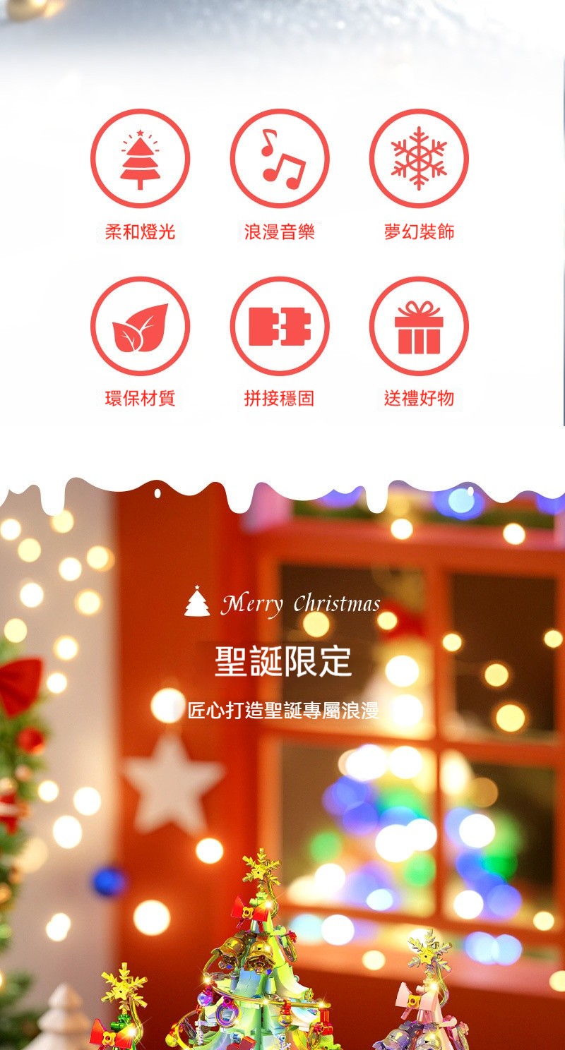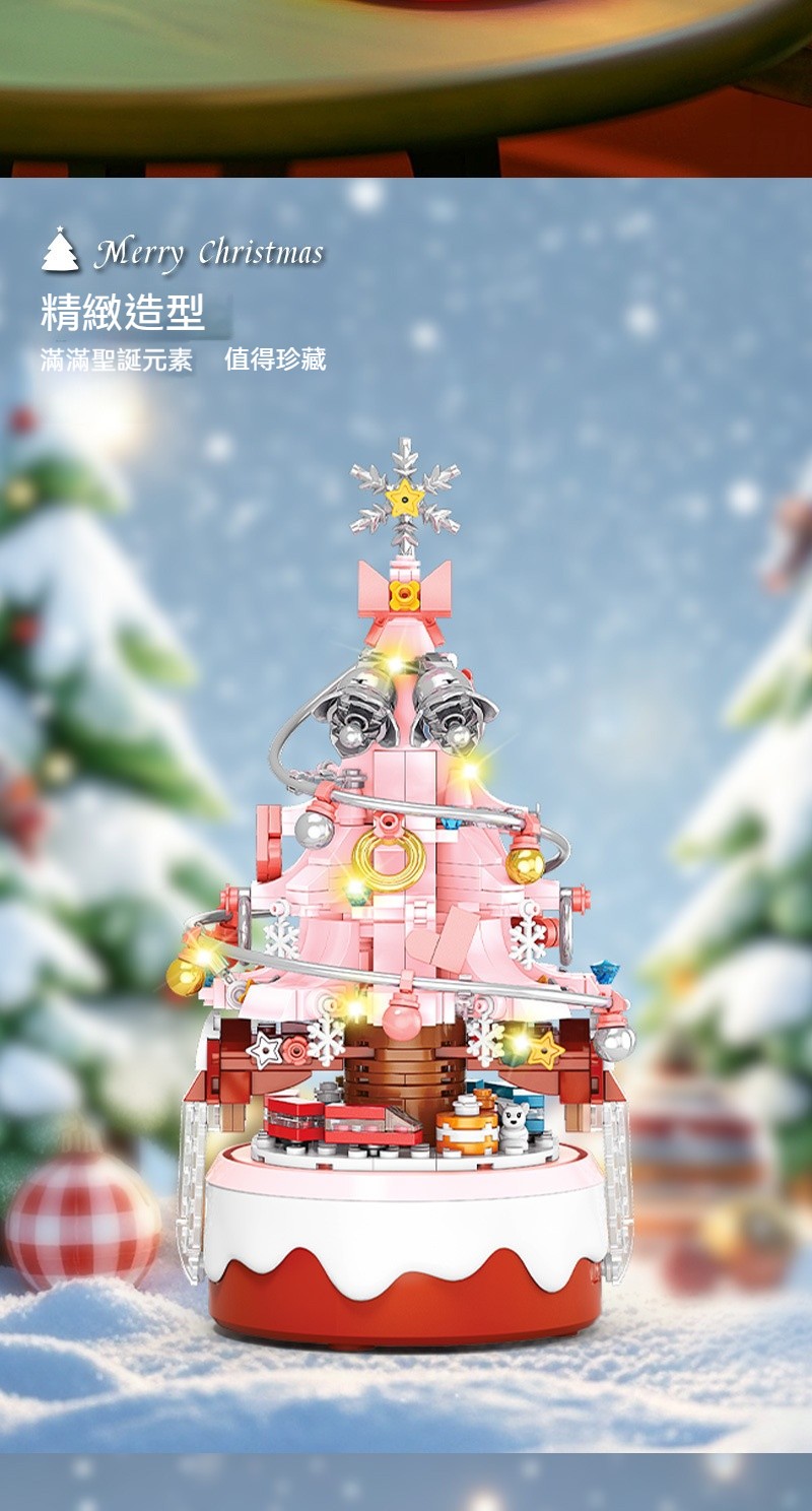 【會唱歌的聖誕樹積木✨拼出屬於妳的浪漫雪景音樂盒✨】✅ 拼砌完成自動播放6首聖誕金曲 ✅ 360°緩旋轉展示 ✅ 溫暖黃光LED燈串 ✅ 台灣檢驗安全材質
