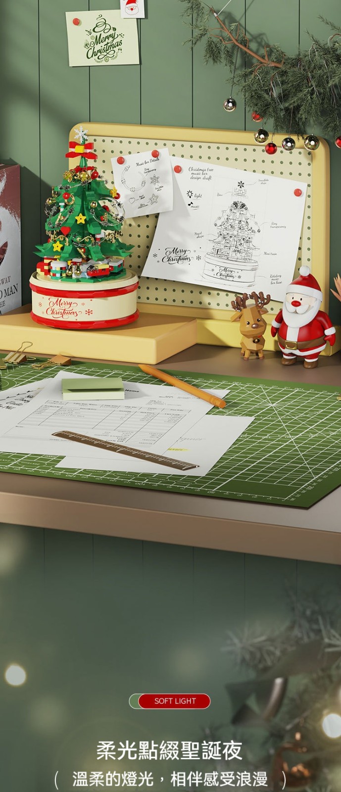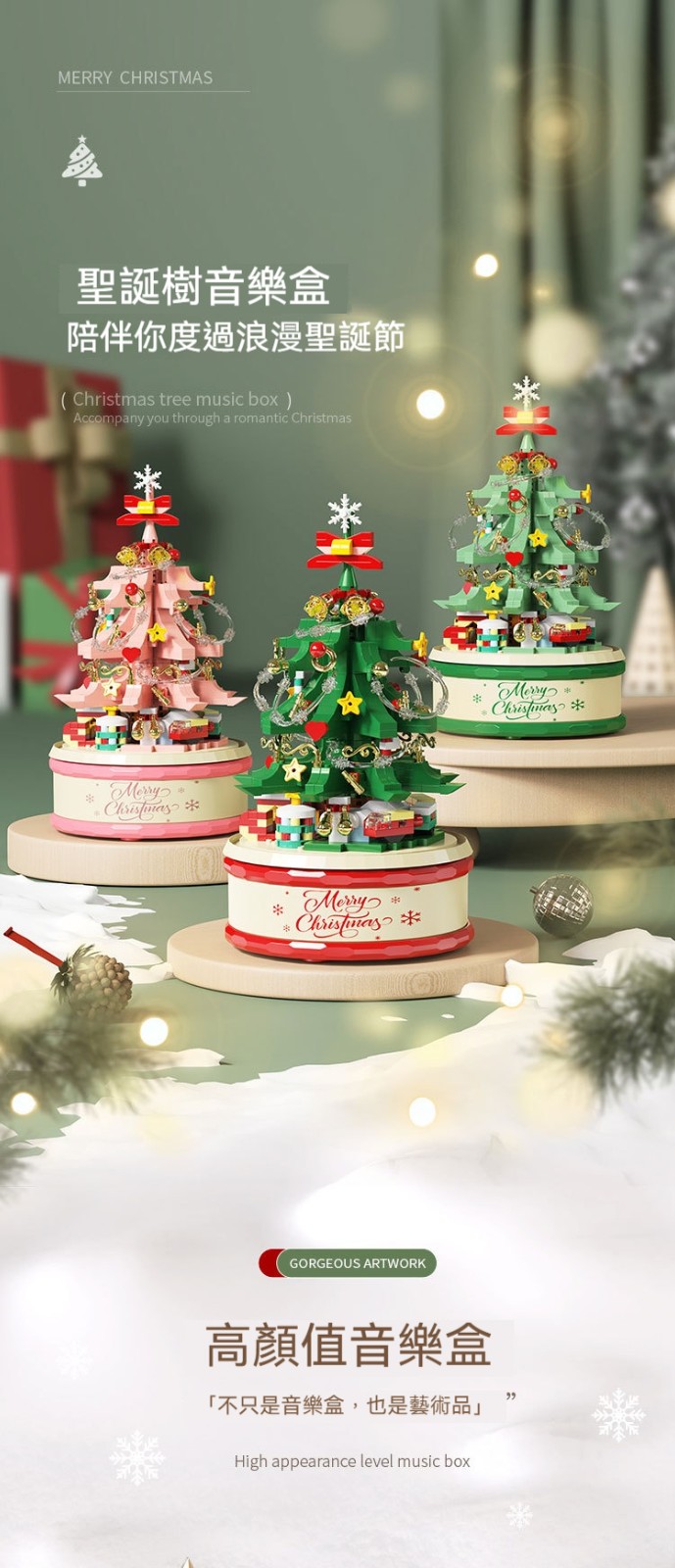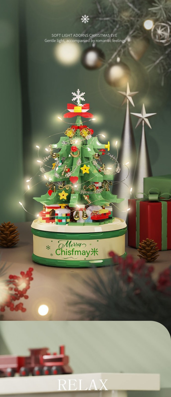 【會唱歌的聖誕樹積木✨拼出屬於妳的浪漫雪景音樂盒✨】✅ 拼砌完成自動播放6首聖誕金曲 ✅ 360°緩旋轉展示 ✅ 溫暖黃光LED燈串 ✅ 台灣檢驗安全材質