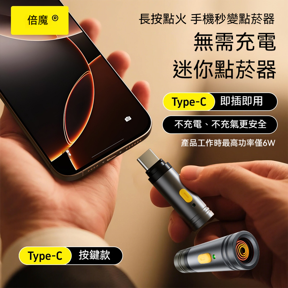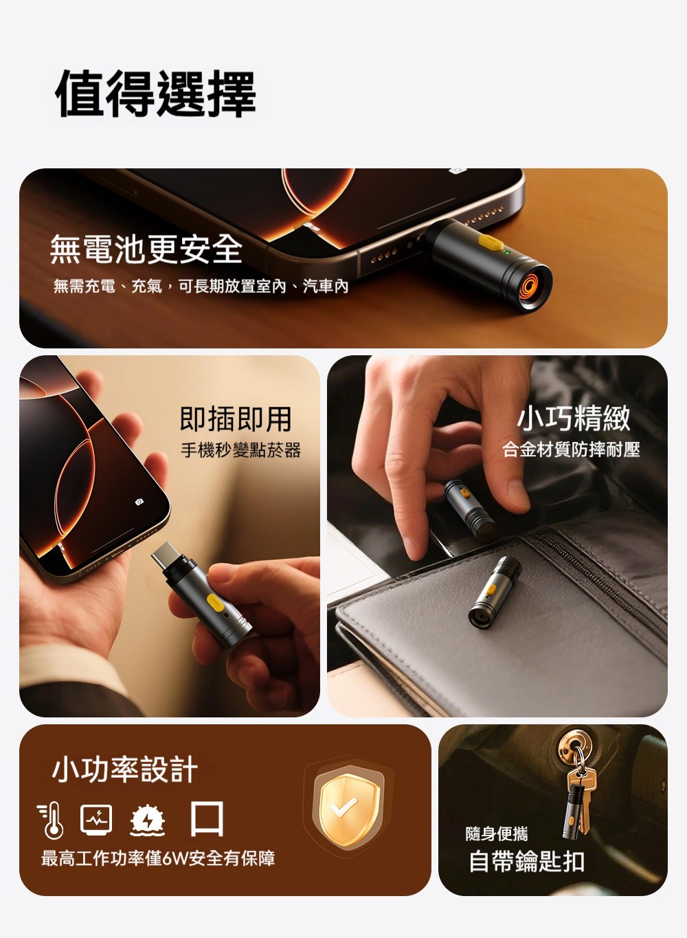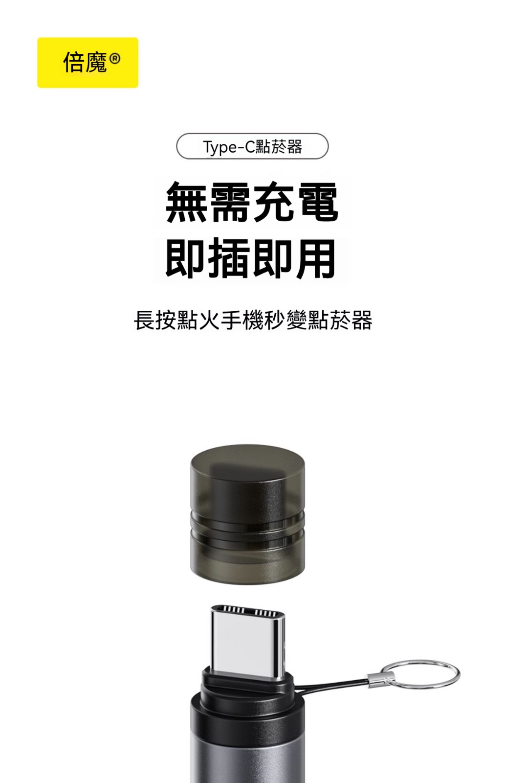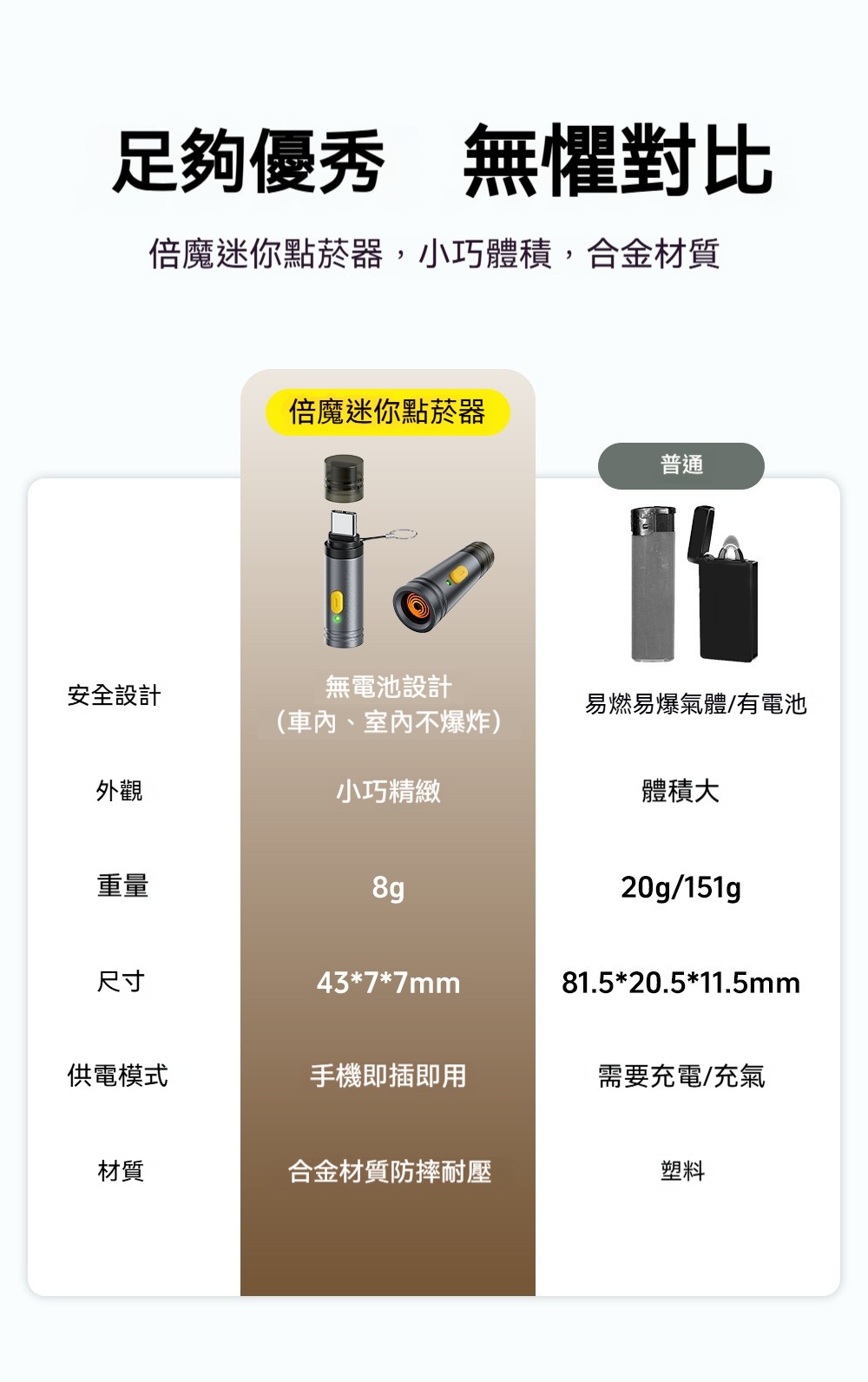 倍魔Type-C 手機迷你安全點煙器 ✅蘋果iphone安卓華為通用✅火折子小巧便攜打火機✅ 無線靜音備用防風節能戶外